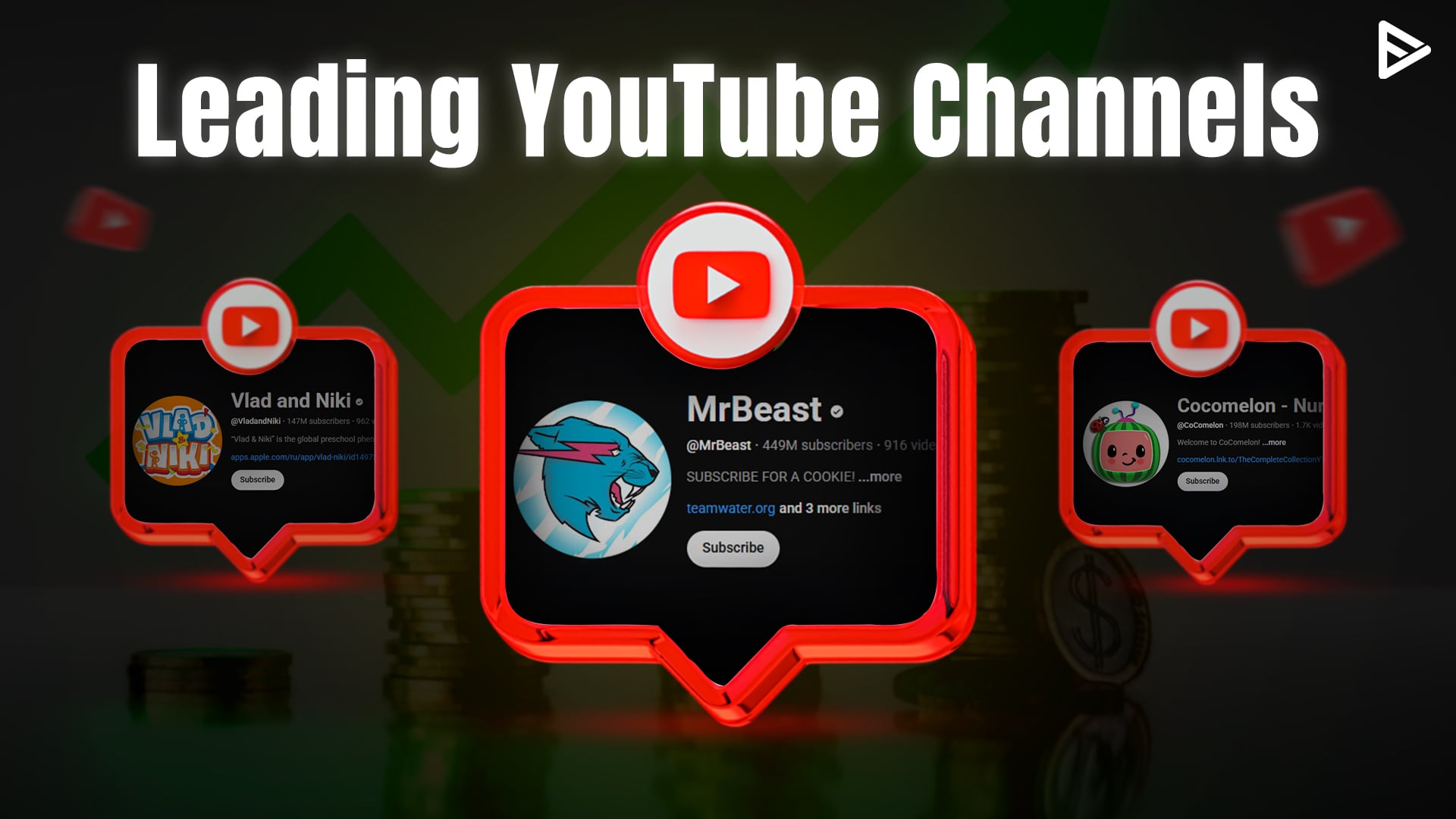 Based on the number of subscribers, Mr. Beast, Cocomelon, Vlad, and Niki are the top 3 most subscribed channels on YouTube.